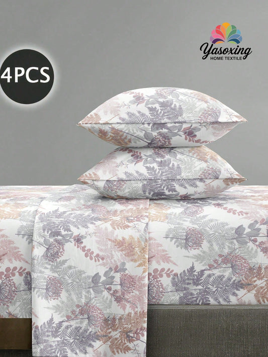 4Pcs Khaki Garden Flower Pattern Sheet Set Bedding Set, 1pc Fitted Sheet & 1pc Flat Sheet& 2pcs Pillowcase Bedding Mattress Protector Set (Not Including Pillow Core)Luxury Fitted Sheet Set King Queen Full TWIN SIZE Sheet Deep Pocket Up To 11.8 Inch Pillow